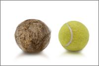Dieser Tennisball ist komplett mit Kaninchenfell überzogen.